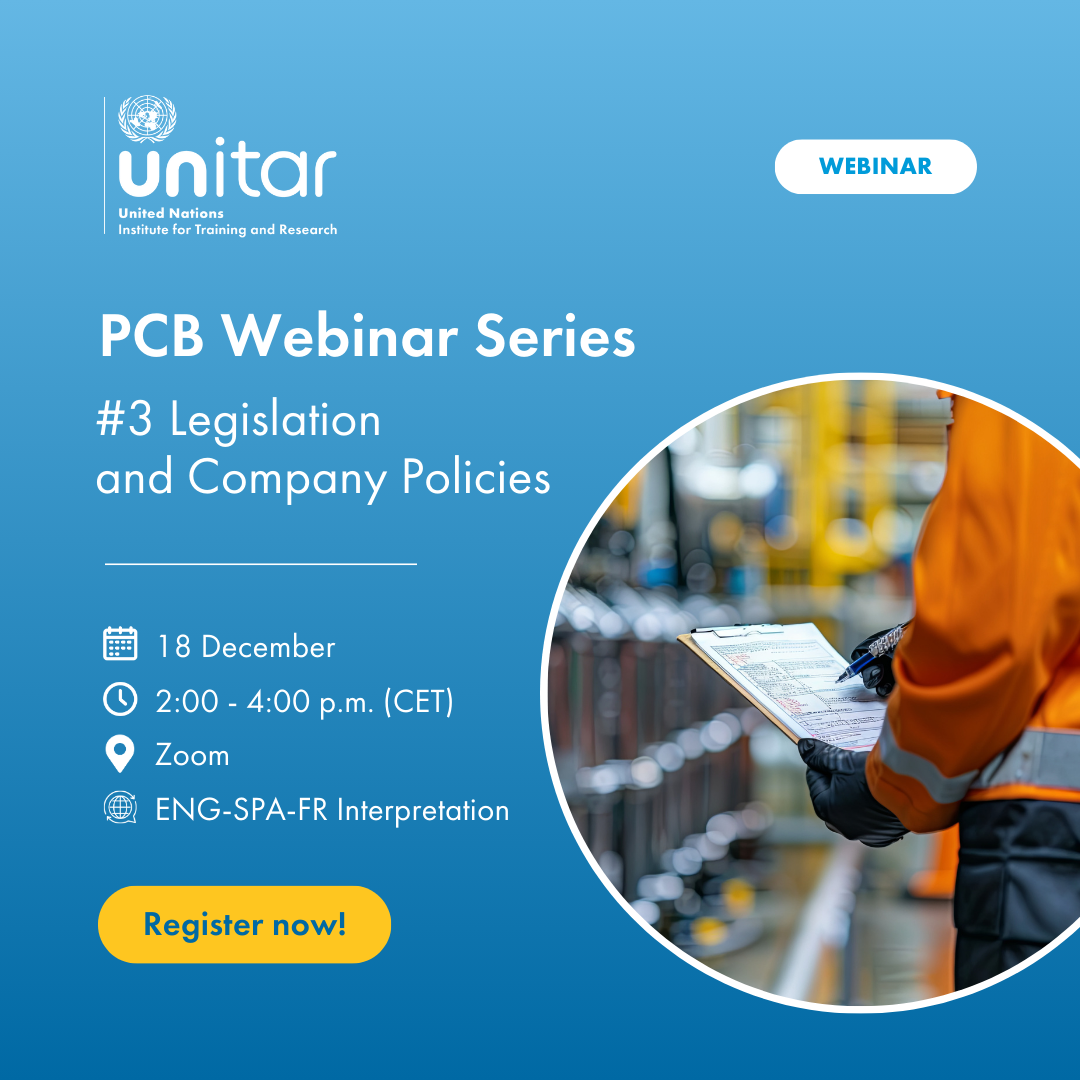 Noting that the environmentally sound management of PCB requires enormous efforts and specific technical knowledge from different stakeholders -from national governments, companies, and international and civil society organisations, among other sectors-UNITAR developed the 2024-2025 PCB Webinar Series to raise awareness and enhance global and national capacities.
